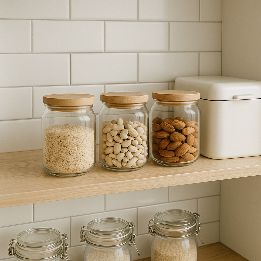Fülle deine Lieferung direkt in deine eigenen Gläser, Dosen oder Boxen um – und gestalte deine Küche müllfrei und individuell. So bleiben deine Vorräte frisch, du behältst den Überblick und vermeidest Einwegverpackungen konsequent.